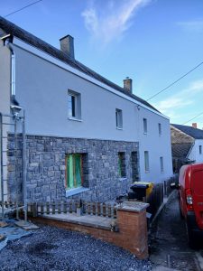 • La pose d’un enduit de type crépi en partie supérieur de façade